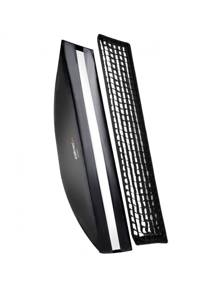 For precisely directing the light, a grid with a depth of 3cm can be fastened to the Velcro running around the edges of the softbox. Also included is a mask which is ideal to create a striplight effect.