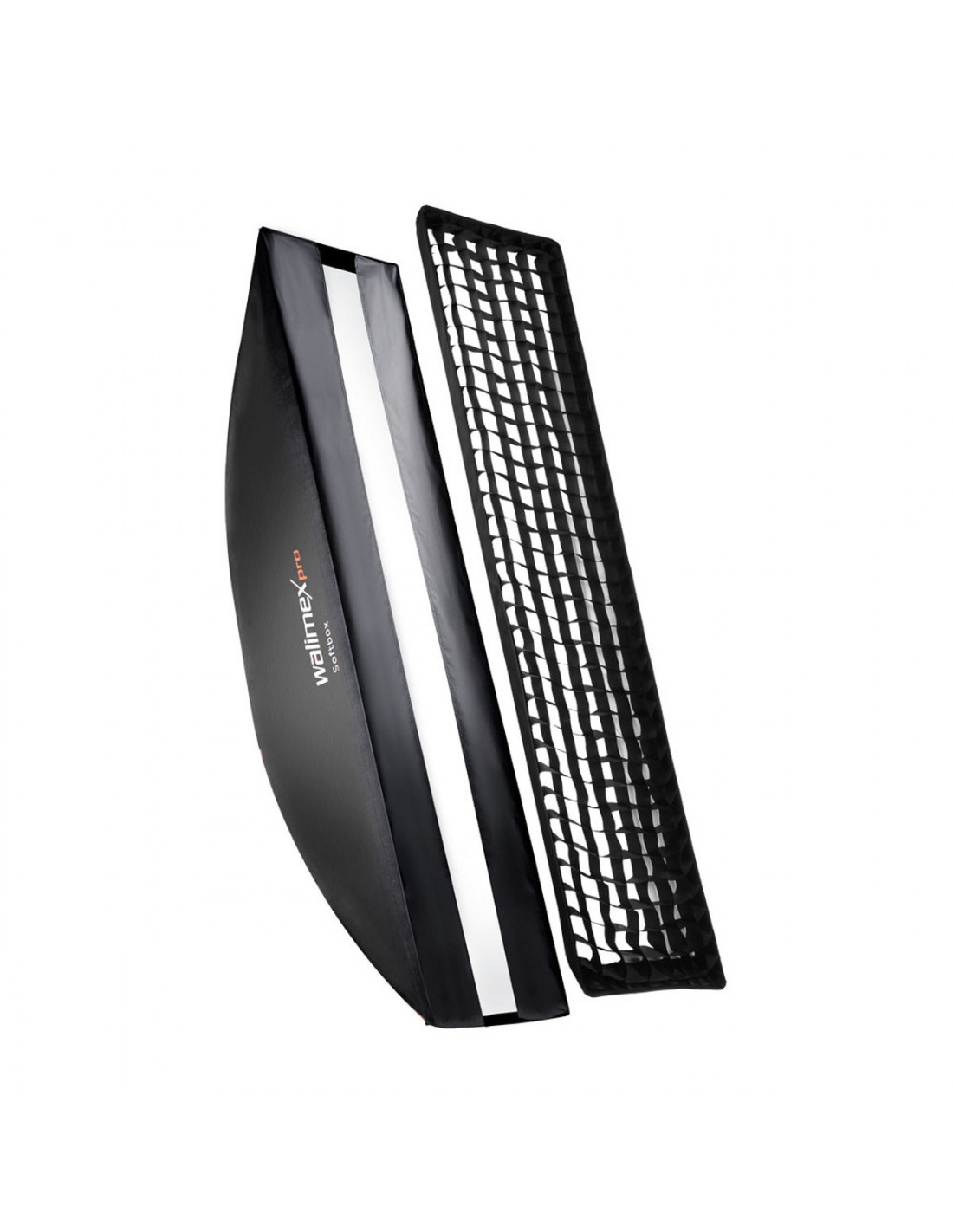 - 1x walimex pro Softbox PLUS Orange Line 30x120, incl. softbox, rods, back diffuser, front diffuser, strip mask, grid and transport bag