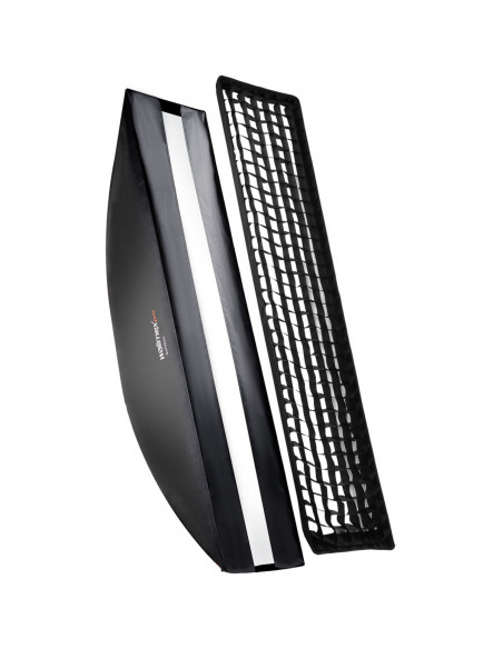 For precisely directing the light, a grid with a depth of 3cm can be fastened to the Velcro running around the edges of the softbox. Also included is a mask which is ideal to create a striplight effect.