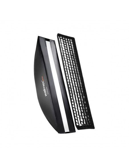 - 1x walimex pro Softbox PLUS Orange Line 22x90, incl. softbox, rods, back diffuser, front diffuser, strip mask, grid and transport bag