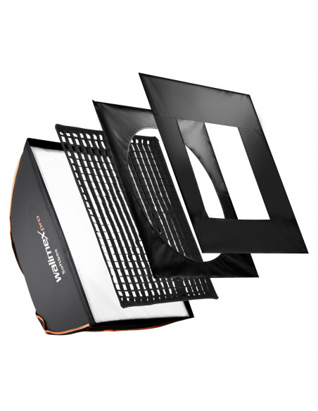 - 1x walimex pro Softbox PLUS Orange Line 60x90, incl. softbox, rods, back diffuser, front diffuser, round mask, square mask, grid and transport bag