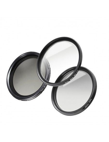 No matter whether you want clear images, more saturated colours or whether you would like to creatively change your images by extending the exposure time - a well sorted filter assortment should not be missing in any photo equipment. Filters can be used for many purposes and, depending on the type of filter, they will generate impressive effects, like e.g. flowing water falls or non-reflecting water surfaces. Besides a polarization filter and an ND-fader this set also contains an UV-filter and is thus excellently suitable for landscape photography.