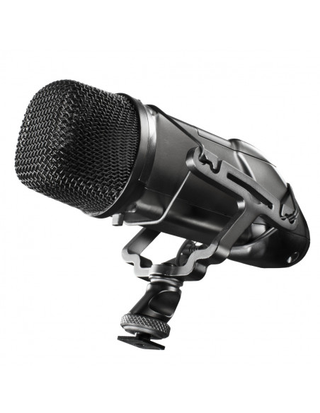 The microphone comes with a standard camera shoe mount for mounting it on a camera. Additionally, a 1/4 inch thread is built into the camera shoe mount, which makes the mounting on a tripod possible. The microphone is powered by a commercially available 9V battery which makes you particularly flexible in your work. The microphone is perfectly suited for many different applications, from weddings and interviews to reports.