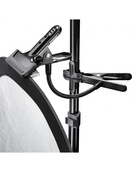 With the Studio Clamp with gooseneck from Walimex pro we offer you a practical solution for the attachment of reflectors, mirrors, colour gels etc. Simply attach the clamp to a base and you have the appropriate basis for your photographic activities. At the approx. 19cm long, bendable gooseneck you can then mount your required utensils. Ideal for tabletop and macro photography.