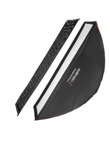 The Striplight Softbox of the Walimex pro Studio Line is a professional light shaper that lets you set a model apart from the background effectively. Product photographers use this softbox when they desire a long, narrow illumination with soft edges. This light shaper is also a great help when shooting in confined spaces. This Striplight Softbox is specially designed for on-location photography and is particularly compact, lightweight and easy to use. High-quality materials and allow for a fast assembly.
