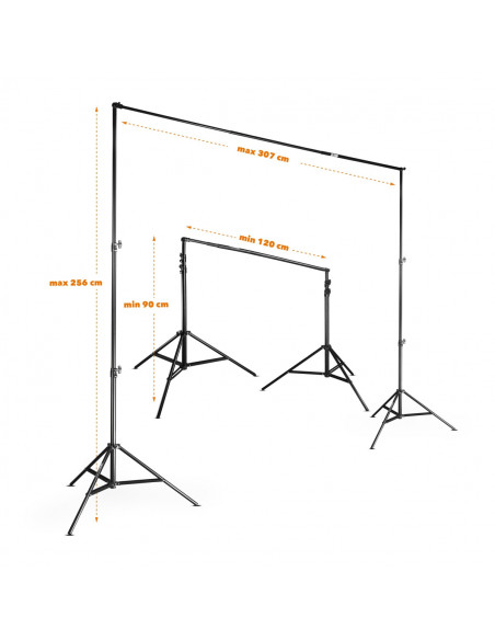 - FLEXIBLE SYSTEM FOR SHORT AND LONG MATERIALS - Large variable width 120 to 307 cm for your photo background by quick and easy extendable crossbar