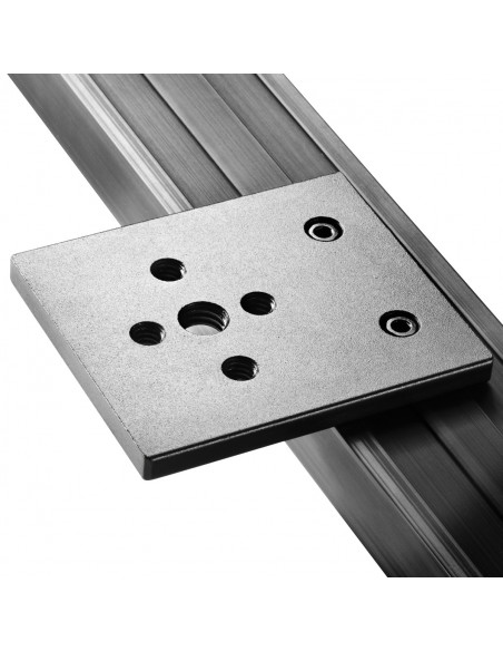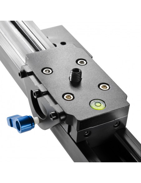 The dolly has a ball bearing and runs smoothly. It ensures that your tracking shots run particularly smoothly and steadily. A fastening screw on the dolly allows a fixation when using the rail vertically or diagonally and a built-in bubble level makes an exact adjustment of the dolly easier.