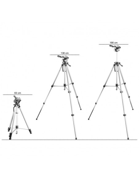 The Walimex pro WT-3570 Basic tripod is a versatile and very sturdy entry-level tripod for photo and video shots. It offers a maximum working height of 168 cm and a 3D panhead as tripod head. It provides many practical features at an attractive price, is very stable and has an enormous maximum height of 168 cm. Despite the solid construction and the wide range of features of this tripod, the Walimex pro WT-3570 only weighs 1,495 g, including the tripod head. A carrying bag and a smartphone holder are included and complete the high quality range of features.