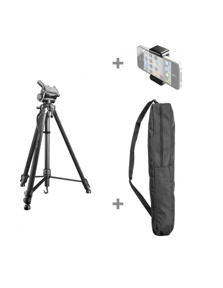The Walimex pro WT-3530 Basic Tripod is a very lightweight and versatile tripod for photo and video recordings. It offers a maximum working height of 146cm and a 3D-Panhead. It offers many practical features and amazing stability at a very attractive price. The tripod is ideal for photo and film shooting with light to medium cameras and thanks to the included smartphone holder it is also optimally prepared for use with the phone.