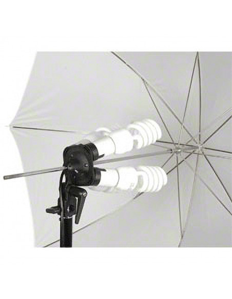 With this lamp holder it is possible to quadruble the output of your lamp (max. 160 Watt). Due to the convenient power switch, it is even possible to switch the lamp holder on and off. And through its 5/8 inch tripod connection, this item is suitable for all common lamp tripods.