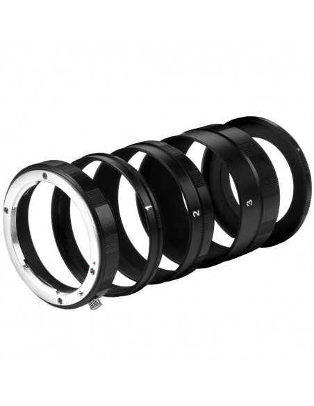 The Intermediate Rings lengthen the extension of your lens, that is the distance between lens and picture. Therewith the focusing distance will be reduced and smaller shooting distances realized. This is ideal for the macro photography, where close distances matter. The three Intermediate Rings at 7mm, 13mm and 27mm and the two bayonet rings can be used in any combination, depending on your required shooting distance and reproduction scale.