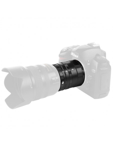 - 1x walimex pro Macro Intermediate Ring Set for Nikon, consisting of three intermediate rings and two bayonet rings