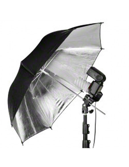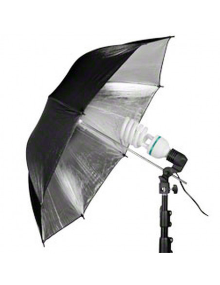 The umbrella holder for a sync flash is ideal for all sync flash lamps and spiral lamps with E27 socket up to max. 250W. It can be rotated by 360° and tilted by 180°, and is therefore extremely flexible. The on and off switch is located directly on the body. When you are working with a compact flash, the lamp holder is ideal for mounting a spiral lamp as a modeling lamp.