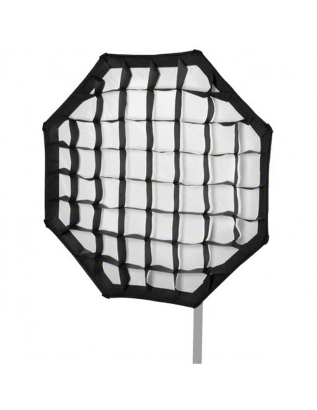The high-quality Octagon Plus Softbox with 90cm diameter is the ideal assistant for soft and even illumination. Whether people, group or large product photography, whenever you want to achieve the most-possible glare-proof lighting, this Softbox is the right tool. Thanks to its innovative technique, it is easy to assemble in a few steps. The rear diffuser, grid as well as the gold and silver inlays, which are also included, can be used optionally. They are easy to remove by means of Velcro fastener. The gold and silver inlays change the light into a warm or cold colour shade, the grid provides straightened light.