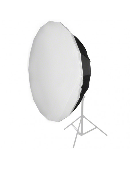 This 16 angled softbox has, believe it or not, a diameter of 180cm. It provides the right light for both product and portrait photography as well as beauty photography and thus for professional results. In contrast to the normal Octagon Softbox, the almost circular shape provides an even more natural light and a particularly pleasant eye reflection. Benefit from these features!