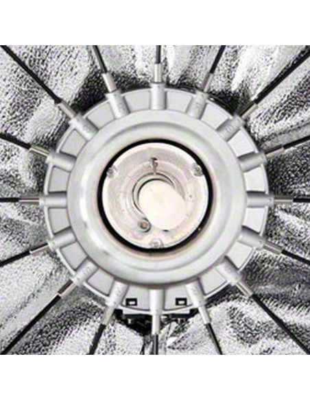 The Softbox is silver coated and reflects the light through its special surface uniformly in all directions. Together with the front and rear diffuser, the lighting mood can be further adapted to the respective requirements.