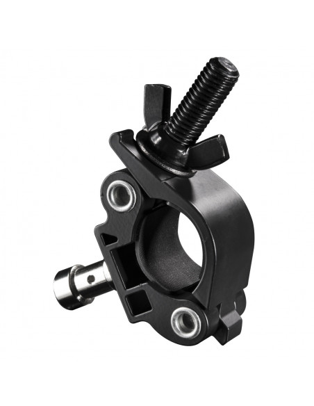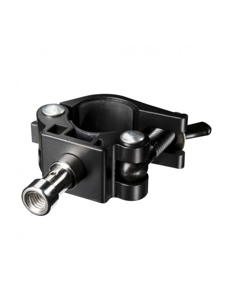Practical helpers in the studio are always needed. A particularly essential utensil is the Spigot Clamp with a 5/8 spigot: With it, you can mount, e.g., studio flashes or other accessories quickly and easily. Simply mount the sturdy screw connection to bars and tubes of the shooting table or a tripod tube and you can attach what you like to the 5/8 spigot without difficulty.