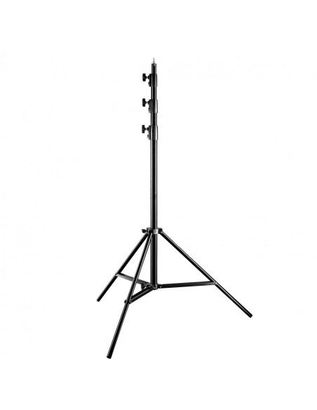 The lamp tripod WT-420 is a high-quality solution for studio photographers. At a net weight of only 6kg and a transport size of approx. 131cm the excellently processed stand can be used portably and flexibly. You can also use studio flashguns or reflectors up to a weight of 7.5kg with this tripod. The spring suspension provides the necessary safety when lowering the individual stand elements. With the standard spigot connection 5/8 inch the studio stand is suitable for all common studio flashguns and lights.