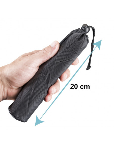 The table and camera tripod by walimex with a maximum extension height of 38cm is a particularly compact tripod, which you can use with compact cameras in many situations. At a weight of only approx. 300g and a transport size of only approx. 22cm, it can be taken with you anywhere without putting an additional strain on you. A bag for storage and transport is included.
