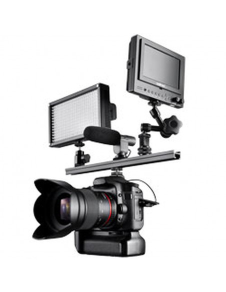 With the Flash Mount Extension Rail by walimex you can mount several accessories, which you would normally mount directly on the flash mount of your camera. You can mount the rail on your camera&rsquo
