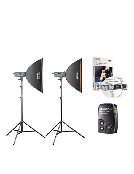The VE Excellence Studio Kit Artist 150 is ready-to-shoot equipment with two 150 W flashes incl. radio remote trigger and receiver and softboxes &ndash
