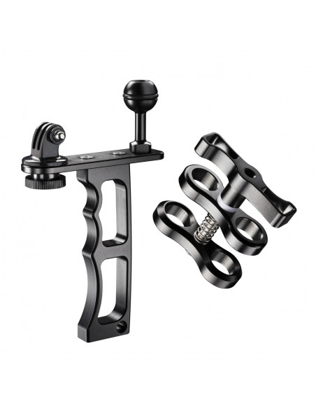 The Accessory set consists of all holders for the walimex pro Scuuba as a gateway to underwater photography and filming. Including handle for GoPpro Hero or cameras with ¼ inch connection as well as holder clip for ball joints, as used on the LED Scuuba 860 (optionally available).