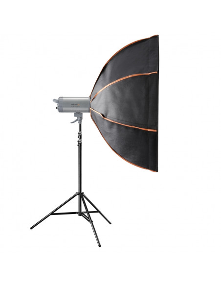 walimex proOctagon Orange Line Plus 120cmThe Softboxes of the Orange Line Plus series from walimex pro above all convince with their unique, high-grade quality. Extremely thick material and highly accurate workmanship guarantee a long lifetime, even after multiple setting up and dismantling. This Premium-Quality prevents bending, even with large size Softboxes.