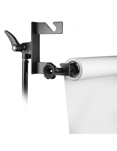 Our paper backgrounds from TETENAL would have a good fit with this item. In connection with our background expans, it is easy to coil the backgrounds up and down. This ensures not just a quick and easy, but also a space-saving changing of your background mounting. Maximum weight per hook: 6kg.