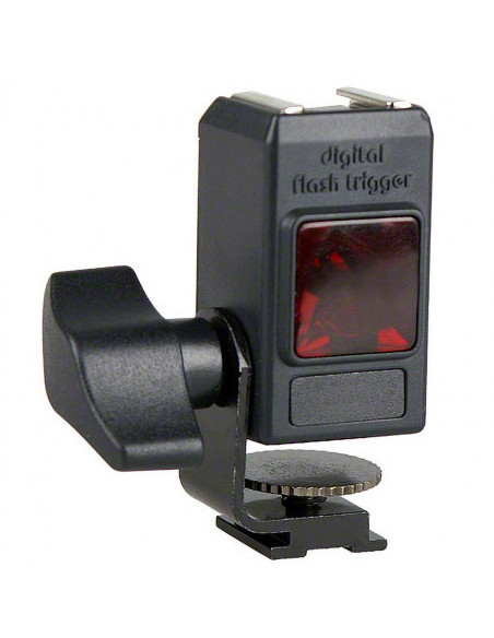 The Digital Flash Trigger suitable can be mounted on hot shoes (except Minolta Dynax series) as well as on photo and lamp tripods. It possesses a 1/4 inch thread. When the photo cell on the front side of the Flash Trigger received the flash light, the flash on the hot shoe will be triggered. Thanks to the tiltable socket, the photo cell can be adjusted exactly.