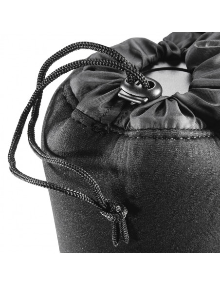 The lens pouch NEO offers reliable protection for your lens. It is made from high-quality and water-repellent neoprene. The material is very lightweight, soft and elastic. At the same time it is very sturdy and durable. The pouch can be closed easily with a drawstring.