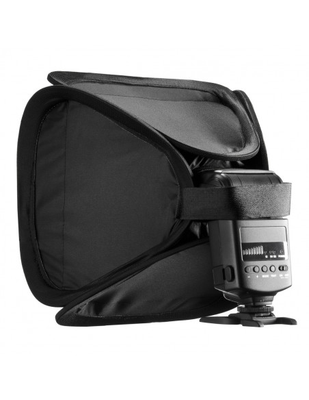 The Magic Softbox by walimex creates soft light which is ideal for portrait, product or nude photography. It is universally suited for system flashes. It is especially well suited in combination with lenses with a focal length of 85mm or more and for remote flashing on an external tripod. A rear diffuser creates an even softer light characteristic if needed.