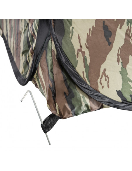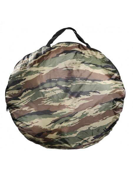 Our Camouflage Tent is characterized through its very sturdy workmanship and high quality. You will get the Tent folded in a camouflage/black carrying bag. Once opened, the stretcher frame will be unfolded nearly without your active help. You surely know this technique from our foldable reflectors and light cubes. Annoying tent poles are not needed anymore. You can enter the approx. 140cm high Tent through a &ldquo