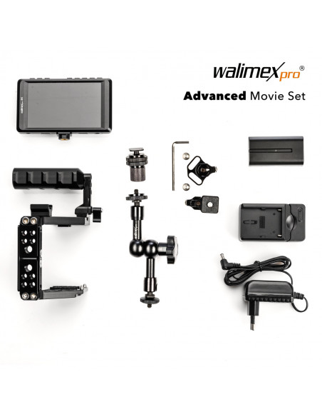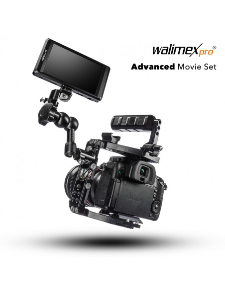Optimize your work flow Whether you're shooting a promotional clip, filming a wedding, or creating a video for social media: This set enables you to capture cinema-ready scenes with your camera in a professional way within minutes. Adjust the cage to your camera, insert the camera, attach the monitor to the cage, run the cable to the camera and you're ready to go! With the help of the monitor, you can see clearly whether you have really focused, and you can set up the frame the way you want it. The high contrast of 900:1 and a removable sun visor make it easy to set up the camera perfectly, whether by hand or on a tripod, even in bright sunshine. You can also connect an external microphone to the cage, or the receiver of your wireless microphone, or other accessories that you need when shooting on the camera. The Magic Arm 18 allows you to position the desired accessories to suit your needs. The anti-twist protection for the articulated arm prevents the articulated arm from sagging or coming loose. With this set you lay the foundation for a solid shooting equipment also for your future cameras!