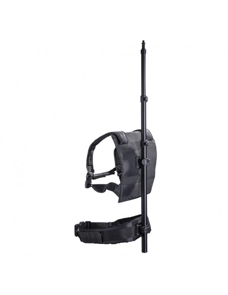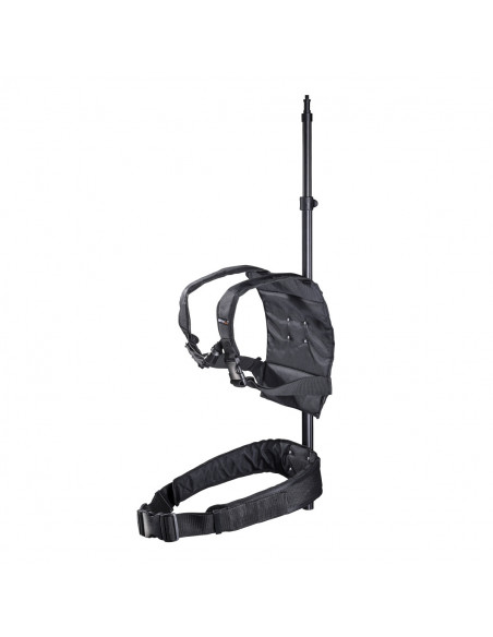 - Innovative carrying system comprising a vest, lap belt and telescopic pole
