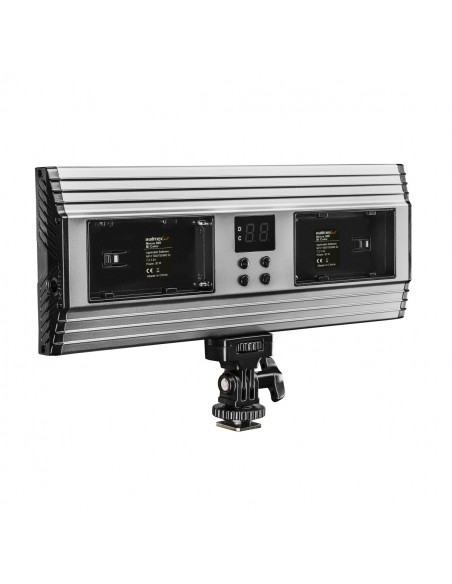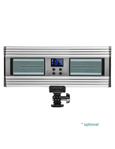 The Niova 300 Bi-Colour can be operated with two Sony NP-F compatible batteries (NP-F 550, NP-F 750 or NP-F 960 and above) or using a power supply unit. Thanks to the high-quality construction, this very modern LED light is very energy-efficient and barely heats up. It is, therefore, possible with sufficiently powerful batteries to use it for hours.
