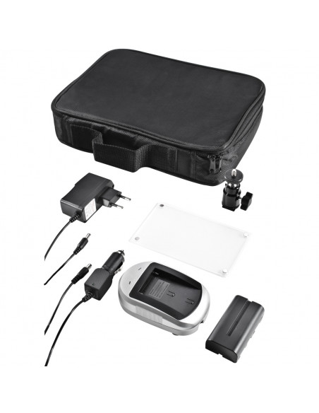 The LED video light Bi-Color by walimex pro is very well-suited for video recordings. Due to its flicker-free light characteristic, the panel light is ideal for high frame rates. Especially in the portrait and reportage fields, the video light proves itself. The color temperature of the LED can be adjusted steplessly from 3200 to 5600K