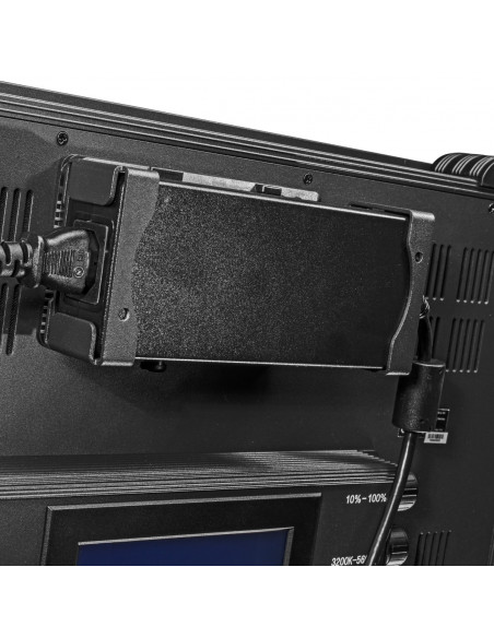 - 2 x DMX controller connection sockets and 1 x V-mount battery slot