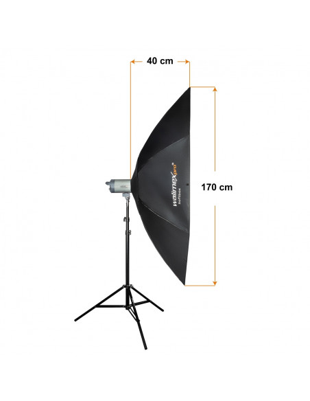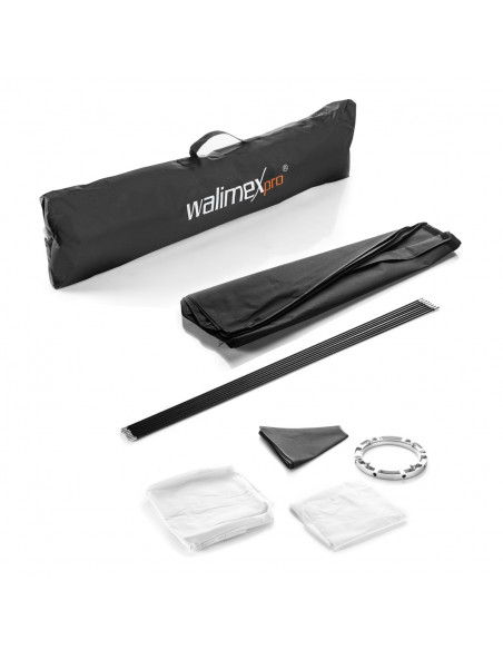 The high-quality Octagon Softbox with 170cm diameter is the ideal assistant for soft and even illumination. Whether beauty, people or glamour photography, whenever you want to achieve the most-possible glare-proof lighting, this Softbox is the right tool. Thanks to its innovative technique, it is easy to assemble in a few steps. The rear diffuser, which is also included, can be used optionally as to make the light softer. The front and rear diffuser are easy to remove by means of Velcro fastener.