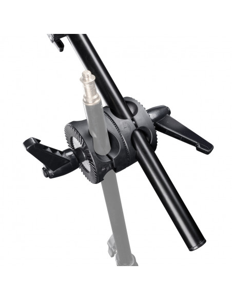 The reflector bracket is an ideal assistant for holding your reflectors. You can attach our folding reflectors to this bracket sturdily and without complications. The tube clamp ensures a sturdy mounting of the Reflector Holder on all lamp tripods, rods, cross braces etc. with a diameter from approx. 18-30mm.