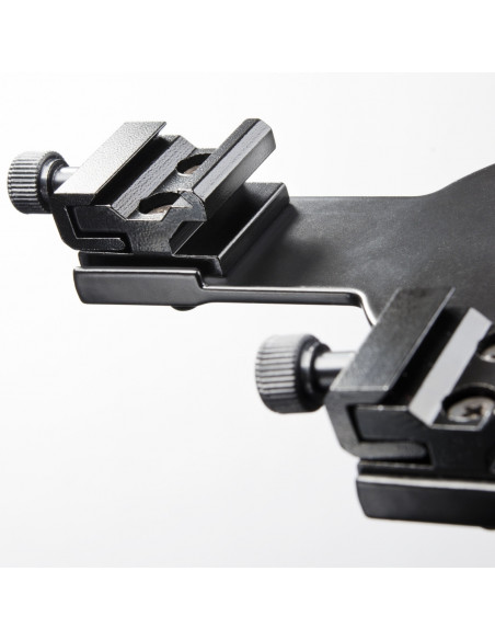 This set by walimex gives you a new option of working with system flash and softbox. Up to four system flashes can be mounted to the system flash holder via a standard flash mount. This way you can combine the output of several system flashes. The holder is equipped with a spigot adapter which allows you to simply mount it on standard studio tripods with a spigot mount.