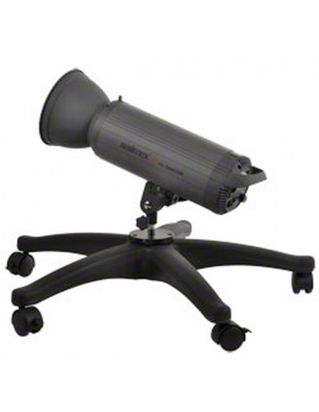 This universal rolling stand for the studio allows you to position up to 12 kg of equipment close to the floor or at a height of up to 110 cm and move it without effort. The stand is ideal for wind machines, lights and studio flashes, but also supports any other equipment. Connection is via a standardised 5/8 inch spigot on the removable, extendable column. A further 5/8 inch spigot is also provided on the base for mounting equipment close to the ground. It is not equipped with any protection against slip-off, but otherwise it resembles the well-known standard spigots and is in no way inferior to them.