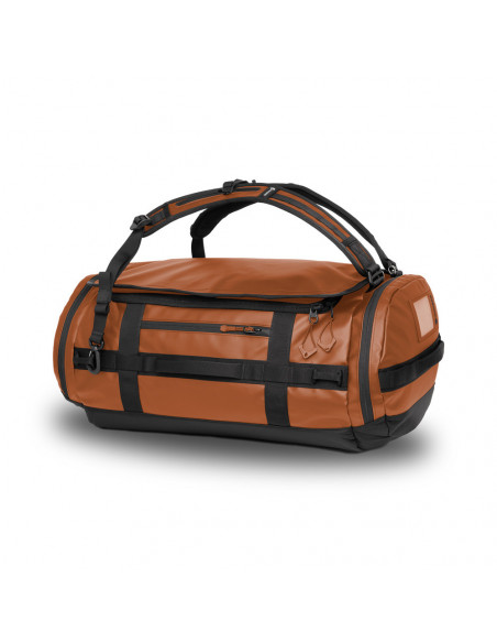 The Brand New CARRYALL Duffel A well thought out backpack/duffle hybrid, the WANDRD CARRYALL Duffel 40L Sedona Orange will adapt to any adventure. It is extremely weatherproof, durable and versatile. Use it for day trips to the slopes to weekend travel, the perfect travel companion. Highlights Carryall backpack straps 4 external attachment points for use with shoulder strap Practical storage space Versatile carrying options With 4 padded handles, you can quickly and easily pick up the CARRYALL Duffel from any angle. Easily transform the duffel into a backpack for added carrying comfort. The 4 external attachment points allow you to use separately available shoulder strap for even more carrying options. Practical storage The luggage tag ensures that your CARRYALL Duffel is always recognizable. On the front is a small exterior zippered pocket for easy access to smaller items such as keys and phone. The lower outer pocket is an expandable for separating laundry or shoes from the rest of your gear. The upper outer pocket with internal mesh pocket provides additional storage and organization for smaller items. The large internal mesh pocket allows you to organize your belongings inside the bag. And easily track your bag with the internal Airtag pocket. Stylish and functional design For a uniform and stylish look, the lining matches the exterior color. (The black version has a gray lining). Note: The shoulder strap is not included. , Volume: 40 liters Internal dimensions: 55.9 x 32.4 x 25.4 cm Weight: 1.34 kg Material: Tarpaulin/ 1680D Balistic Nylon Lifetime Warranty