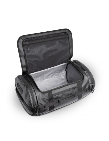 The Brand New CARRYALL Duffel The WANDRD CARRYALL Duffel 60L Black is a well thought out backpack/duffle hybrid and will adapt to any adventure. It is extremely weatherproof, durable and versatile. Use it for day trips to the slopes to weekend travel, the perfect travel companion. Highlights Carryall backpack straps 4 external attachment points for use with shoulder strap Practical storage space Versatile carrying options With 4 padded handles, you can quickly and easily pick up the CARRYALL Duffel from any angle. Easily transform the duffel into a backpack for added carrying comfort. The 4 external attachment points allow you to use separately available shoulder strap for even more carrying options. Practical storage The luggage tag ensures that your CARRYALL Duffel is always recognizable. On the front is a small exterior zippered pocket for easy access to smaller items such as keys and phone. The lower outer pocket is an expandable for separating laundry or shoes from the rest of your gear. The upper outer pocket with internal mesh pocket provides additional storage and organization for smaller items. The large internal mesh pocket allows you to organize your belongings inside the bag. And easily track your bag with the internal Airtag pocket. Stylish and functional design For a uniform and stylish look, the lining matches the exterior color. (The black version has a gray lining). Note: The shoulder strap is not included. , Volume: 60 liters Internal dimensions: 61 x 35.6 x 25.4 cm Weight: 1.92 kg Material: Tarpaulin/ 1680D Balistic Nylon Lifetime Warranty