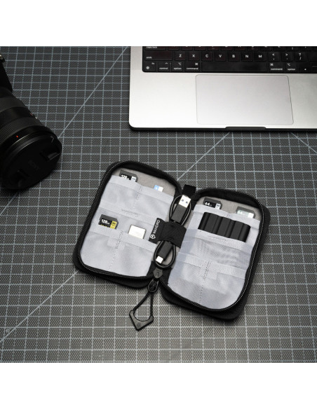 Designed for designers by designers The WANDRD Memory Card Case Black is designed for designers. This durable memory card case has space for multiple memory cards, cords and an SSD. Built with the premium materials you've come to expect from WANDRD, so they're always protected and ready for your next project. Highlights 8 small internal mesh pockets 2 large internal mesh pockets Organisation of cords External webbing loop Weather resistant and durable materials Protective design The memory card case is small enough to easily carry in your pocket, purse or camera bag. It is designed to keep your memory cards and accessories safe from bumps, dust and moisture. It is made of premium materials and is weatherproof. Space for several cards The memory card case accommodates different sizes of memory cards. Each card has its own compartment, making them easy to find and use. , Internal dimensions: 15.2 x 10.5 x 4.4 cm Volume: 0.7 litres Weight: 0.12 kg Material: Sailcloth/ 1680D Balistic Nylon Lifetime warranty