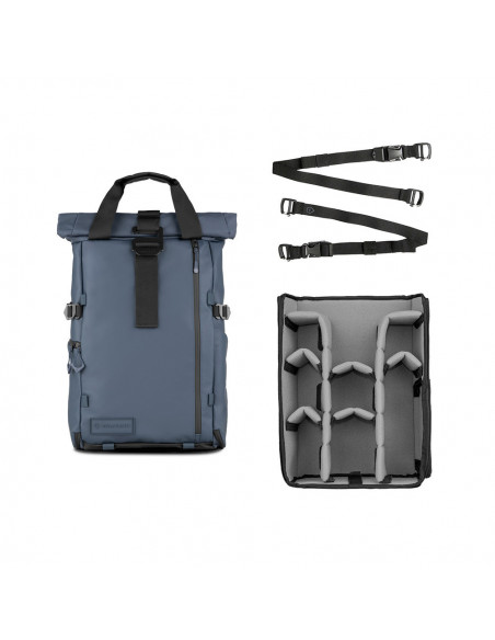 A complete set so you have everything at your fingertips The updated design of the WANDRD PRVKE 31L Aegean Blue Pro Photography Bundle V4, but as a photography bundle. It has a sleek, modern monochrome look with matching shoulder straps and roll top. Comfort has been redefined with a fresh shape and new padding in the shoulder straps and back panel, providing a breathable, ergonomic fit that adapts to many body types. Highlights With all new V4 updates Renewed handles, zipper pulls, and subtle changes to the logo A quick access zipper closure through the roll closure A larger opening on the quick access side pocket Includes Pro + Camera Cube v2 and accessory straps V2 Fully equipped The PRVKE combines an adjustable layout with a padded laptop sleeve and well designed pockets. Made from weather resistant materials and equipped with a secure passport pocket. The clamshell opening, straps, quick side access, and zipper access to the roll top provide flexibility on the go. Magnetic handles, an expandable pocket for a water bottle or tripod, attachment points for accessories, and a handy key pocket complete the package. The ideal protection for your equipment The WANDRD Pro + Camera Cube v2 is made for serious creators who need maximum protection, total organization, and lightning fast access to their equipment. Ideal for professional DSLR cameras and suitable for larger zoom lenses. New design The new Pro Cube has been redesigned to integrate perfectly with the entire PRVKE and WANDRD ecosystem and now features a soft gray interior for better visibility, a refined modular divider system, and a redesigned structure that can be fully opened, no center bar, no wasted space, just neat, customizable storage space. Accessory straps The WANDRD Accessory Straps add extra functionality to your PRVKE bag. The straps have a buckle closure and can be used to attach a tripod or jacket to the backpack, for example. , Features WANDRD PRVKE 31L V4 Volume: 31 liters Weight: 1.49 kg External dimensions: 47 x 30.5 x 16.5 cm Internal dimensions: 41 x 25 cm x 14 cm External materials: Tarpaulin/ 1680D ballistic nylon Internal materials: P200 denier with PU coating Warranty: Lifetime Features WANDRD Pro + Camera Cube v2 Capacity: 12.5 liters Weight: 0.58 kg Side access: 20.3 x 10.2 cm External dimensions: 41.3 x 27.9 x 10.8 cm Internal dimensions: 40.6 x 26.7 x 10.2 cm Long dividers: 8.9 x 41.3 cm Short dividers: 8.9 x 9.5 cm 420D Robic nylon with weather resistant coating P200D interior YKK zippers Lifetime warranty , D291291 WANDRD PRVKE 31L Aegean Blue Pro Photography Bundle V4 D291491 WANDRD Pro + Camera Cube v2 D249931 WANDRD ACCESSORY STRAPS BLACK V2