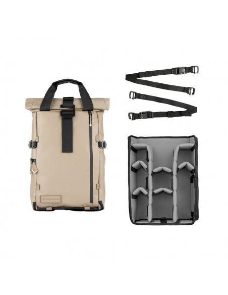 A complete set so you have everything at your fingertips The updated design of the WANDRD PRVKE 31L Yuma Tan Pro Photography Bundle V4, but as a photography bundle. It has a sleek, modern monochrome look with matching shoulder straps and roll top. Comfort has been redefined with a fresh shape and new padding in the shoulder straps and back panel, providing a breathable, ergonomic fit that adapts to many body types. Highlights With all new V4 updates Renewed handles, zipper pulls, and subtle changes to the logo A quick access zipper closure through the roll closure A larger opening on the quick access side pocket Includes Pro + Camera Cube v2 and accessory straps V2 Fully equipped The PRVKE combines an adjustable layout with a padded laptop sleeve and well designed pockets. Made from weather resistant materials and equipped with a secure passport pocket. The clamshell opening, straps, quick side access, and zipper access to the roll top provide flexibility on the go. Magnetic handles, an expandable pocket for a water bottle or tripod, attachment points for accessories, and a handy key pocket complete the package. The ideal protection for your equipment The WANDRD Pro + Camera Cube v2 is made for serious creators who need maximum protection, total organization, and lightning fast access to their equipment. Ideal for professional DSLR cameras and suitable for larger zoom lenses. New design The new Pro Cube has been redesigned to integrate perfectly with the entire PRVKE and WANDRD ecosystem and now features a soft gray interior for better visibility, a refined modular divider system, and a redesigned structure that can be fully opened, no center bar, no wasted space, just neat, customizable storage space. Accessory straps The WANDRD Accessory Straps add extra functionality to your PRVKE bag. The straps have a buckle closure and can be used to attach a tripod or jacket to the backpack, for example. , Features WANDRD PRVKE 31L V4 Volume: 31 liters Weight: 1.49 kg External dimensions: 47 x 30.5 x 16.5 cm Internal dimensions: 41 x 25 cm x 14 cm External materials: Tarpaulin/ 1680D ballistic nylon Internal materials: P200 denier with PU coating Warranty: Lifetime Features WANDRD Pro + Camera Cube v2 Capacity: 12.5 liters Weight: 0.58 kg Side access: 20.3 x 10.2 cm External dimensions: 41.3 x 27.9 x 10.8 cm Internal dimensions: 40.6 x 26.7 x 10.2 cm Long dividers: 8.9 x 41.3 cm Short dividers: 8.9 x 9.5 cm 420D Robic nylon with weather resistant coating P200D interior YKK zippers Lifetime warranty , D291311 WANDRD PRVKE 31L Yuma Tan Pro Photography Bundle V4 D291491 WANDRD Pro + Camera Cube v2 D249931 WANDRD ACCESSORY STRAPS BLACK V2