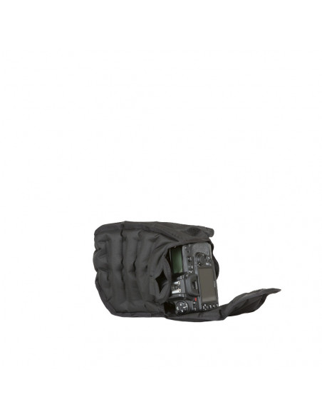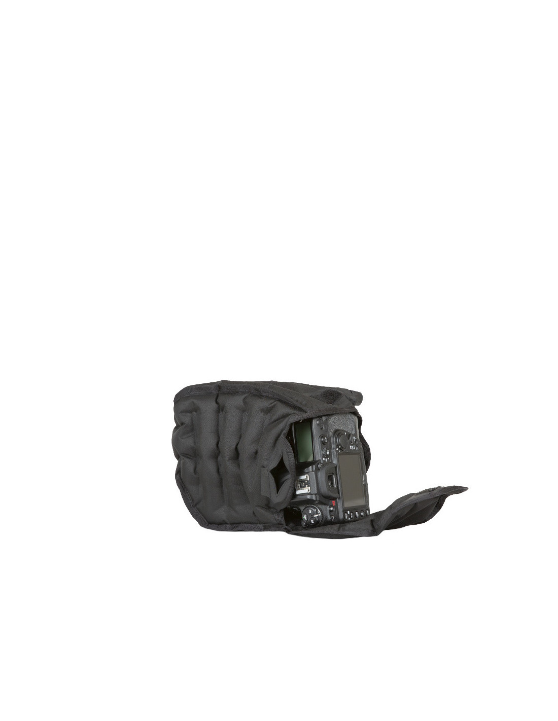 The Wandrd Inflatable Camera Cube is included in this bundle with the Wandrd Spring 18L. This water resistant bag has a velcro closure. The back panel can be folded compactly, so that the bag only measures 15.2 x 7.62 x 7.62cm. You simply place the Camera Cube in the Veer 18L backpack ,
