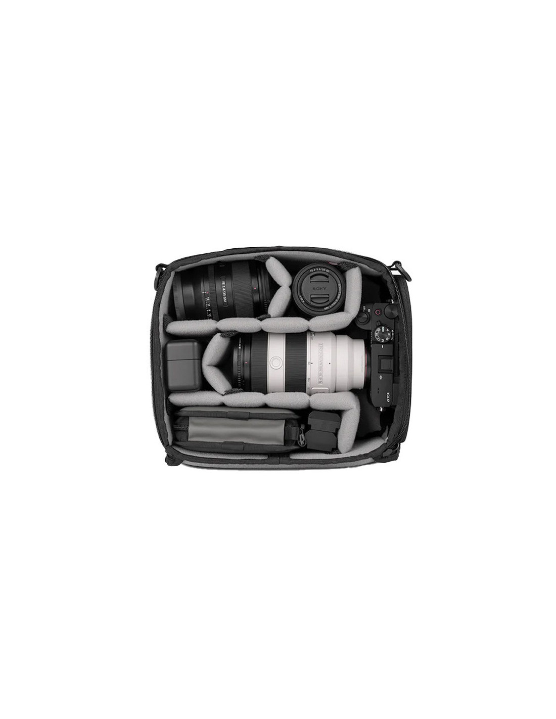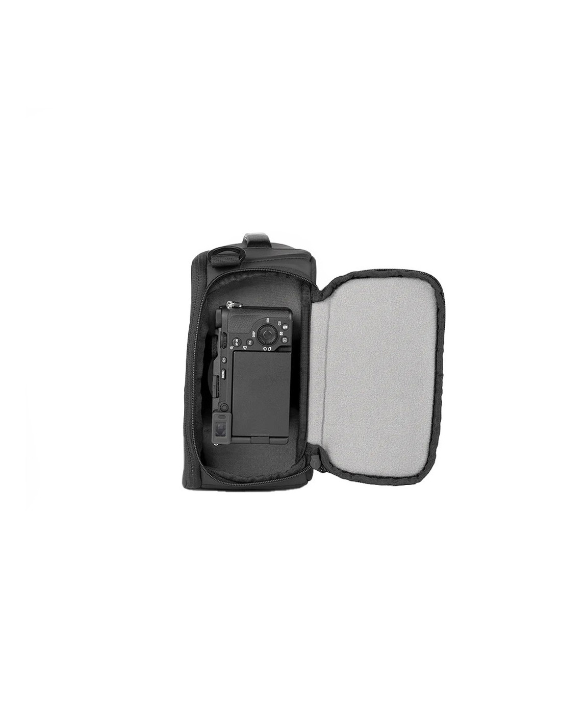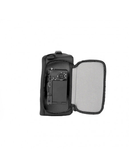 Den hurtige åbning kan du få fat i dit kamera på få sekunder, mens tre elastikbånd holder mindre emner som batterier og filtre på plads.