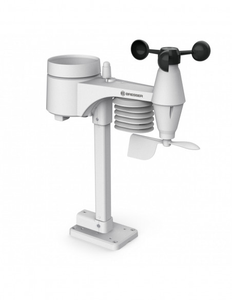 The new BRESSER Weather Station 5-in-1 combines in a unique way a compact design with an extensive information service. The very compact and multifunctional outdoor sensor requires only little space and thus can be placed almost anywhere. A pipe clamp and screws for the attachment at poles (pipe diameter of about 25-33 mm) as well as a stand are already included!