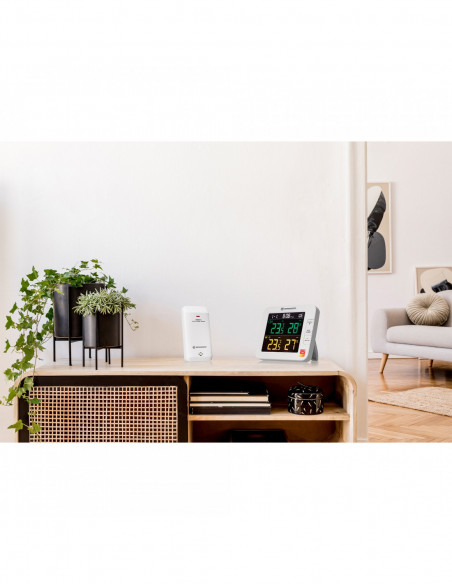 _x000D_ While at home, you want to see at a quick glance whether the next round of ventilation is due? The smart thermometer/hygrometer comes with a chic base station that features a large, clearly structured colour LCD display. In addition to the measurements, the trend arrow indicates the temperature and humidity trend over next few minutes. If you're not sure of the ideal relationship between temperature and humidity, the device also features a comfort level indicator, which displays a smiley to show the current comfort level.